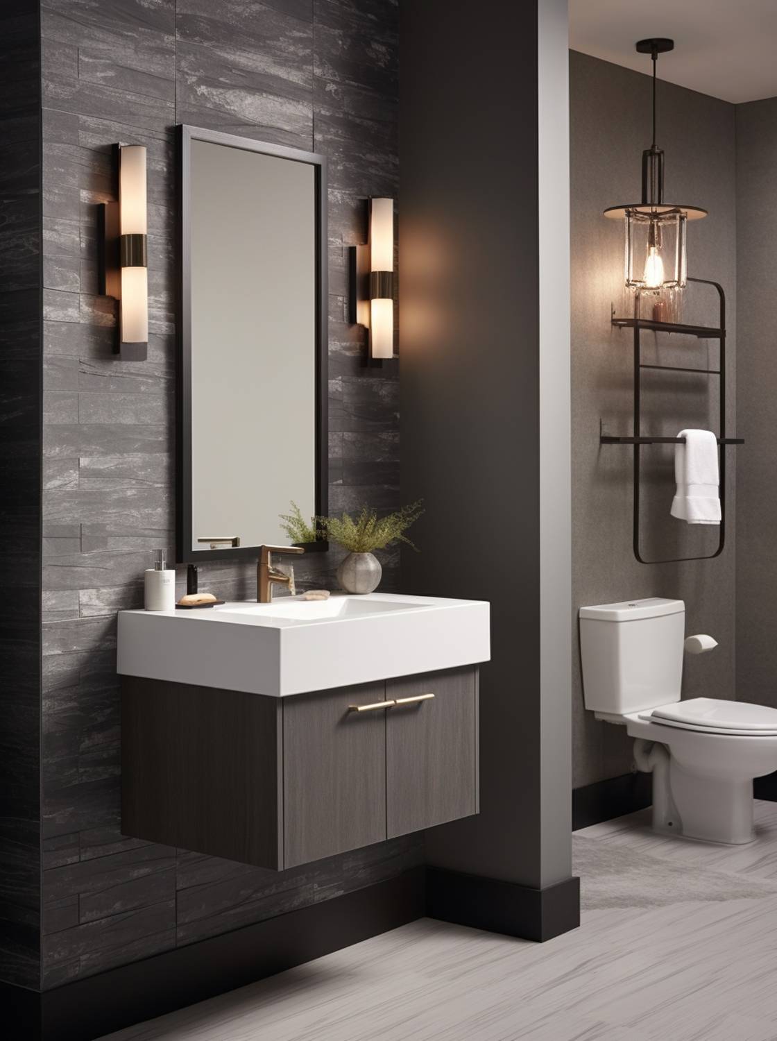 Wall-mounted bathroom vanities and fixtures bring a modern, minimalist touch to your space.